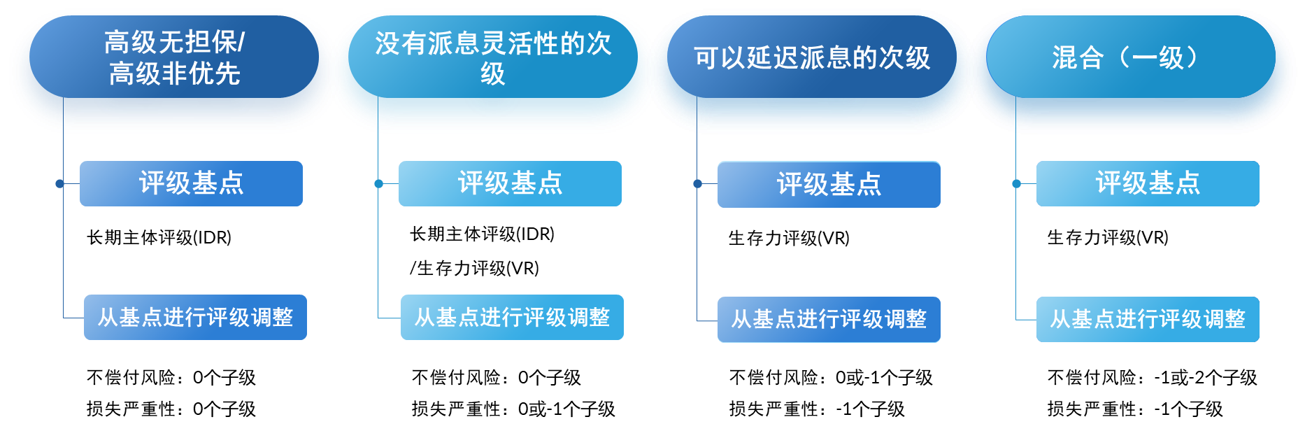 目前中国资本市场上商业银行发行的主要债务工具类型评级调整方法: