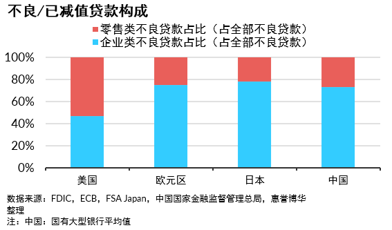 不良贷款生成结构差异明显,美国零售为主、欧日企业集中、中国企业主导且零售边际上行